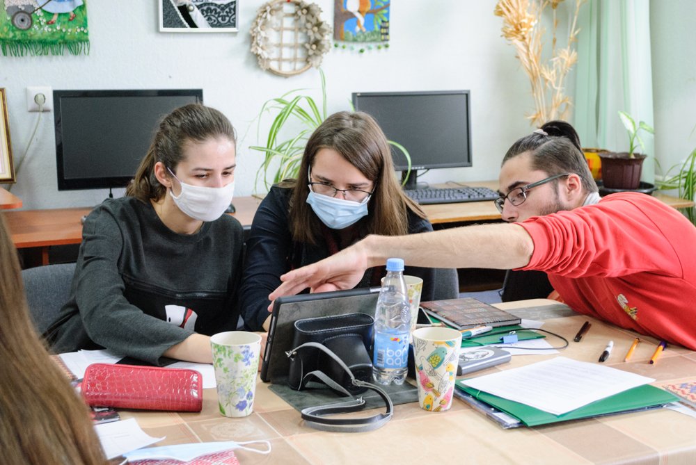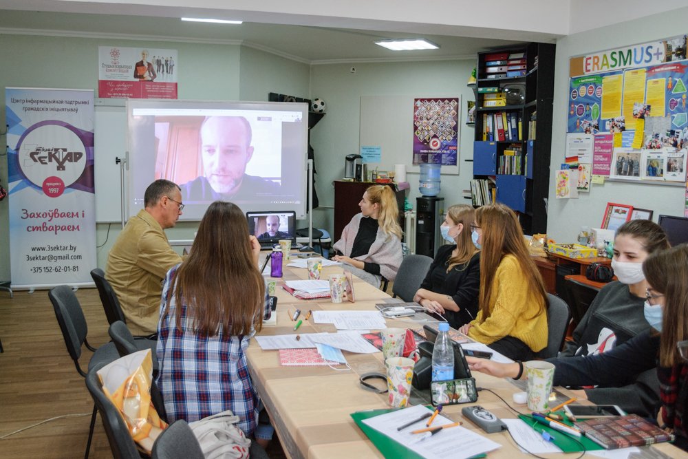 У першы дзень уводнага семінара, што адбываўся ў офісе гродзенскага партнёра праекта, грамадскага аб’яднання «Цэнтр «Трэці Сектар», удзельнікі пазнаёміліся паміж сабой і са сваімі калегамі з Кішынёва і Чарнаўцоў пад час сесіі ў Google Meetings.