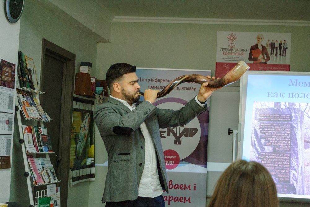 Дырэктар яўрэйска-хрысціянскага дыялогу «Shomer International» Яўген Калодзін расказаў студэнтам пра помнікі Халакосту, што ўсталёўваліся ў Беларусі пасля сканчэння ІІ Сусветнай вайны да сённяшняга дня. Яўген адзначыў, што ў савецкі час ініцыятывы ўвекавечыць памяць пра загінулых яўрэяў у большасці выпадкаў сустракаліся з чыноўніцкай бюракаратыяй і палітыкай антысемітызму. Напрыклад, у музеі Вялікай Айчыннай вайны Халакосту прысвечаны адзін стэнд. У перыяд незалежнай Беларусі шмат помнікаў і шыльдаў ўдалося ўсталяваць яўрэйскім супольнасцям, у тым ліку дзякуючы ўраду Германіі, дзе падтрымка мемарыялізацыі Халакосту з’яўляецца часткай палітыкі пакаяння, адзначыў Яўген Калодзін.