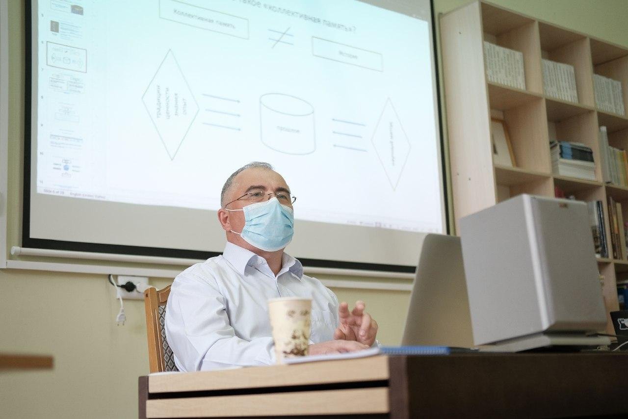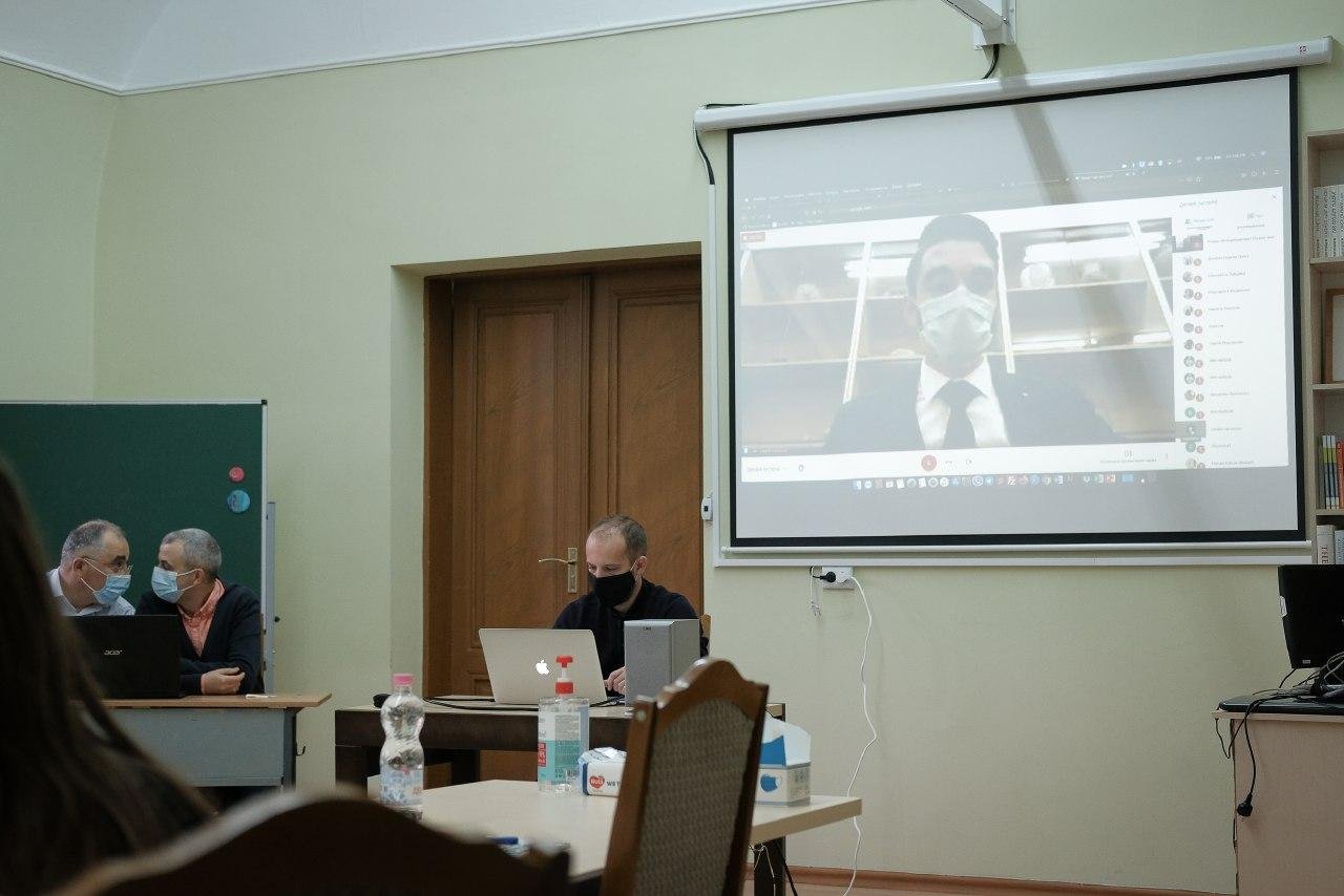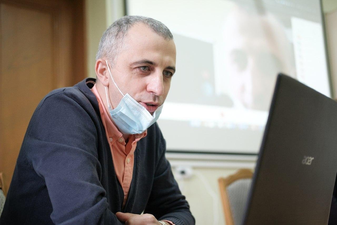 Im abschließenden Teil des Online-Treffens hielt Mykola Kuschnir, Leiter des Museums für jüdische Geschichte und Kultur der Bukowina, einen Vortrag über die Konzepte des kollektiven Gedächtnisses und der Erinnerungskultur sowie über ihre Rolle beim Aufbau der Zivilgesellschaft. Er diskutierte auch mit den Teilnehmern aus Czernowitz über die Besonderheiten der lokalen Erinnerungskultur und gab eine kurze Einführung in die Geschichte der lokalen jüdischen Gemeinde.