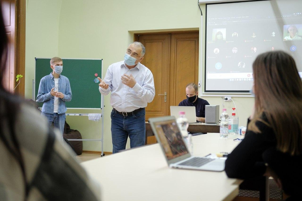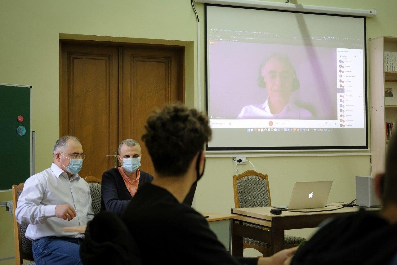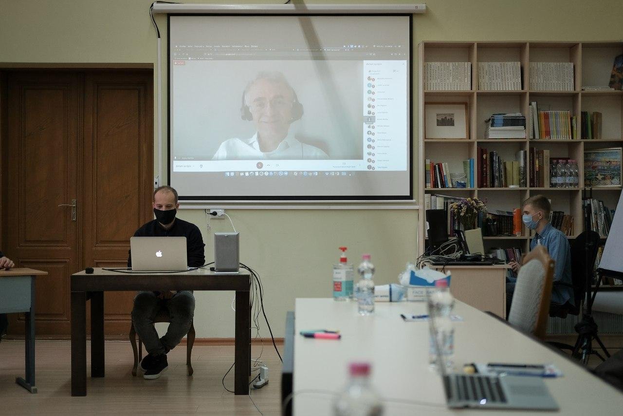 Im abschließenden Teil des Online-Treffens hielt Mykola Kuschnir, Leiter des Museums für jüdische Geschichte und Kultur der Bukowina, einen Vortrag über die Konzepte des kollektiven Gedächtnisses und der Erinnerungskultur sowie über ihre Rolle beim Aufbau der Zivilgesellschaft. Er diskutierte auch mit den Teilnehmern aus Czernowitz über die Besonderheiten der lokalen Erinnerungskultur und gab eine kurze Einführung in die Geschichte der lokalen jüdischen Gemeinde.