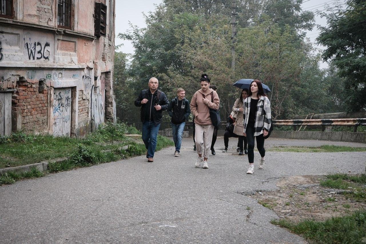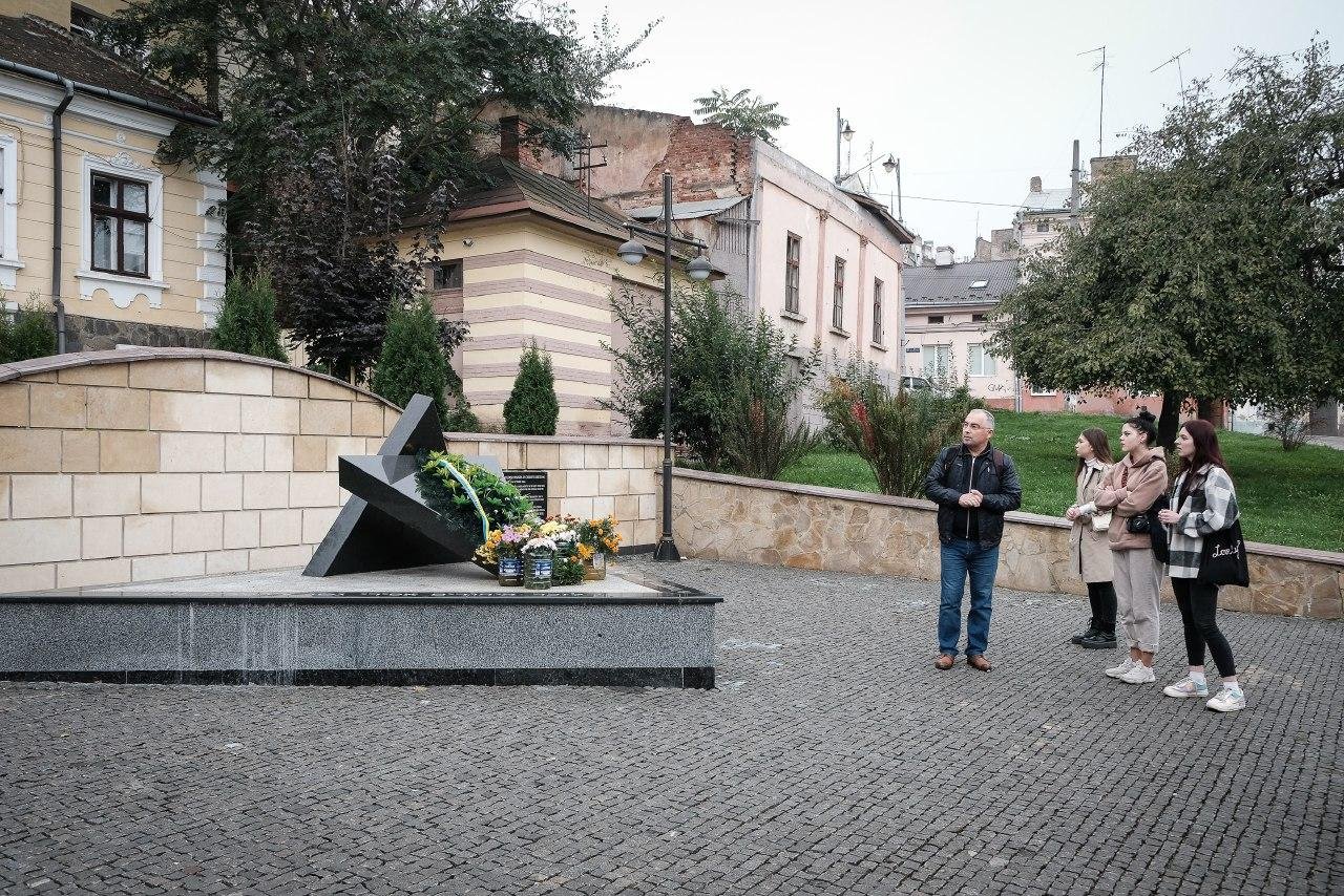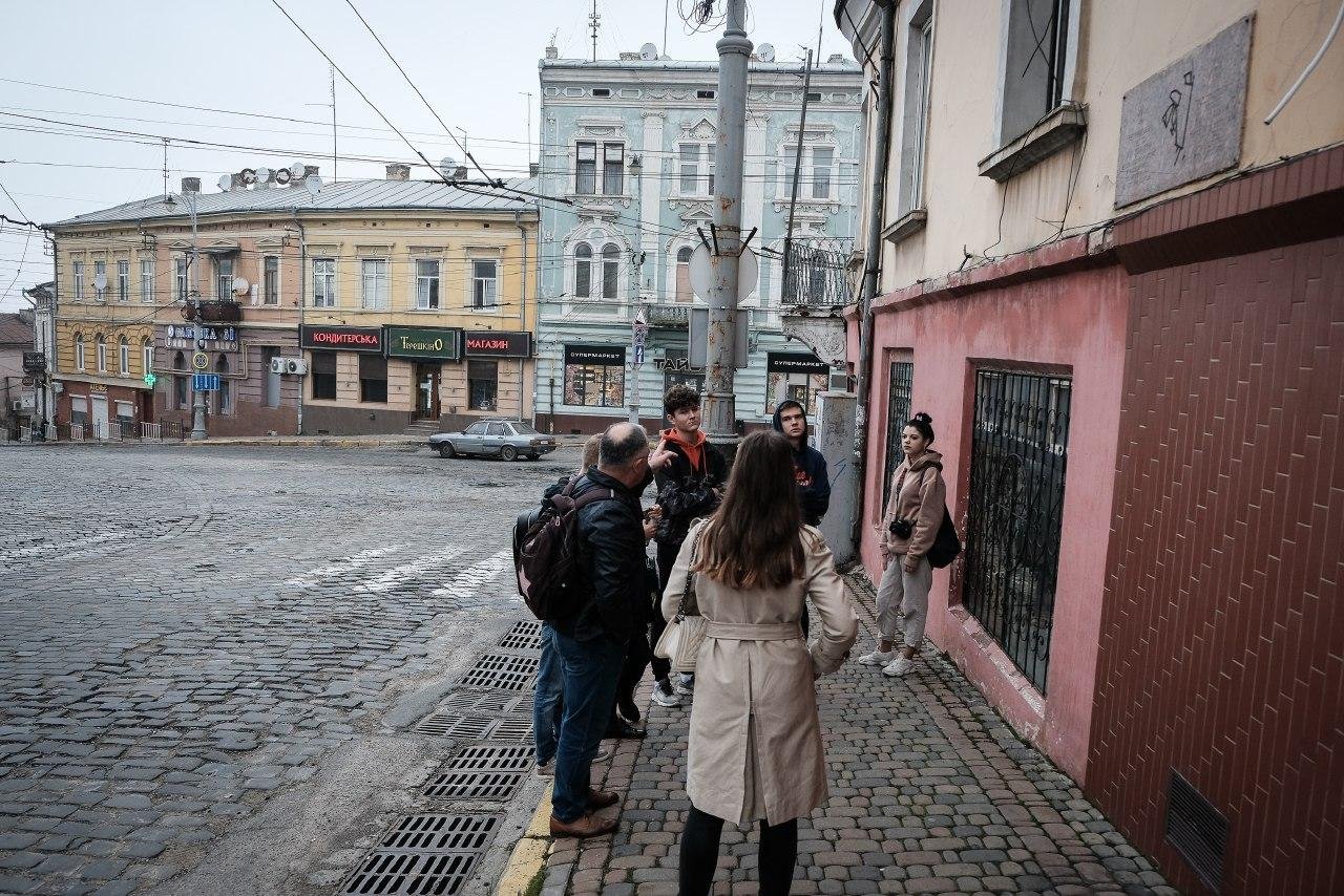 Після відвідин гетто учасники проєкту зустрілася з місцевим фотографом, який провів для них майстер-клас про те, як користуватися відеодроном і які відео можна знімати за його допомогою.